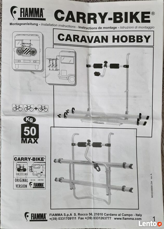 Zestaw zawiera 2 egzemplarze oryginalnego bagażnika Fiamma Carry‑Bike Caravan Hobby.